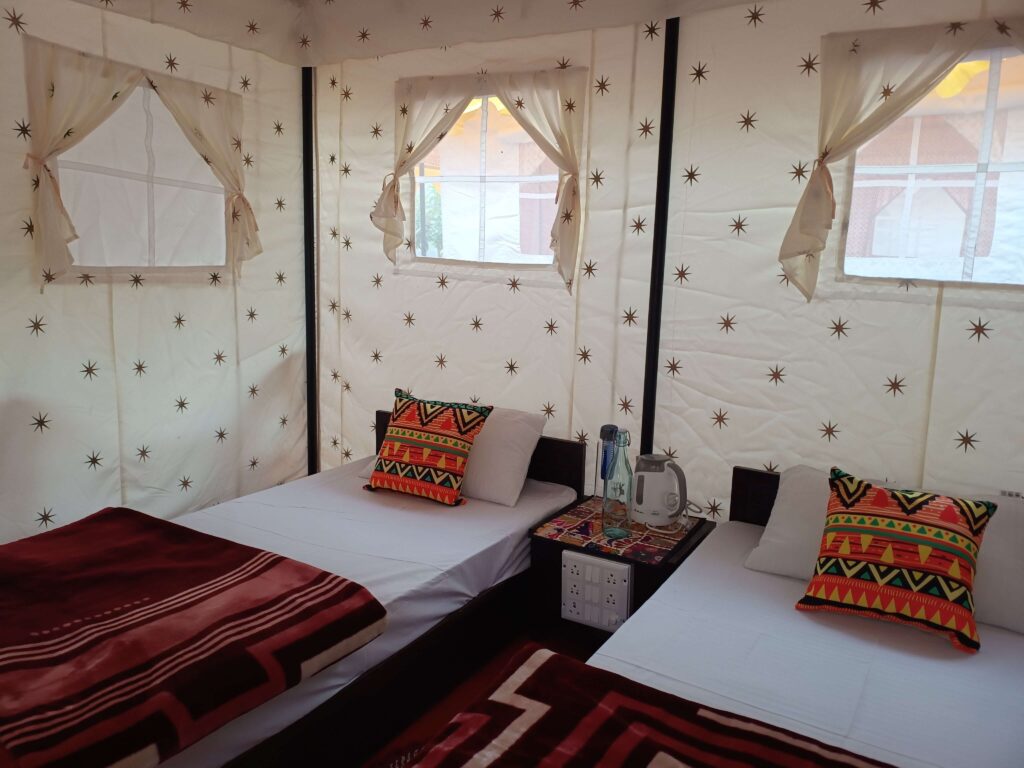 Nestled in the valley on the banks of the Ganga, Saura is a lovely little tented camp that combines rustic comfort with homely charm, offering great naturalists and authentic experiences. It serves as the ideal base to explore the natural beauty, located 17 kilometers from Uttarkashi in the village of Aungee. The team at Saura Cottages takes immense pride in its idyllic location right by the pristine and gushing Ganga river. Tucked away from the chaos of everyday life, it allows visitors to reciprocate the love of Mother Earth.